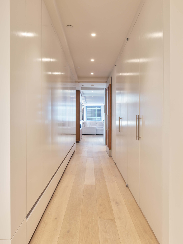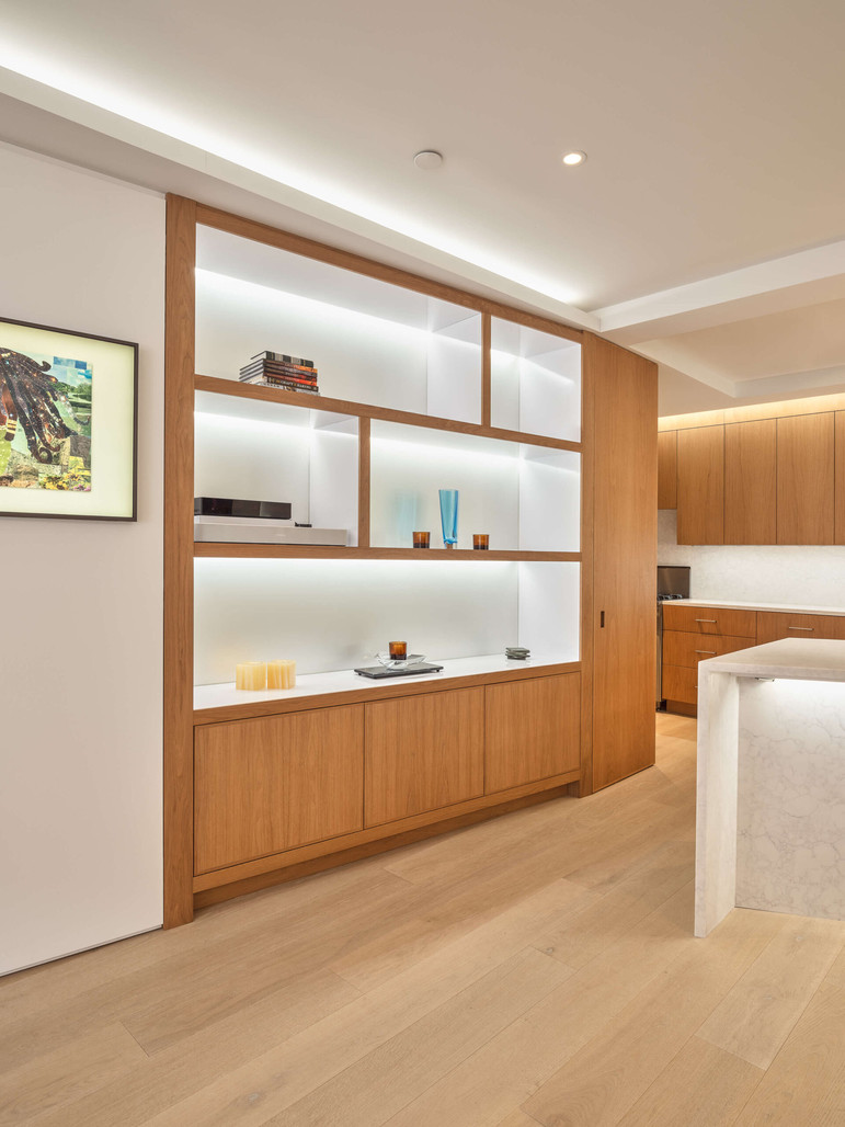 The light tone of the Stile Odessa European Oak seems to shift with the seasons in this Upper West Side residence, from a cool grey, to a warm, light natural feel. The color, combined with the light brush surface and subtle knots, come together to create a calming organic vibe.